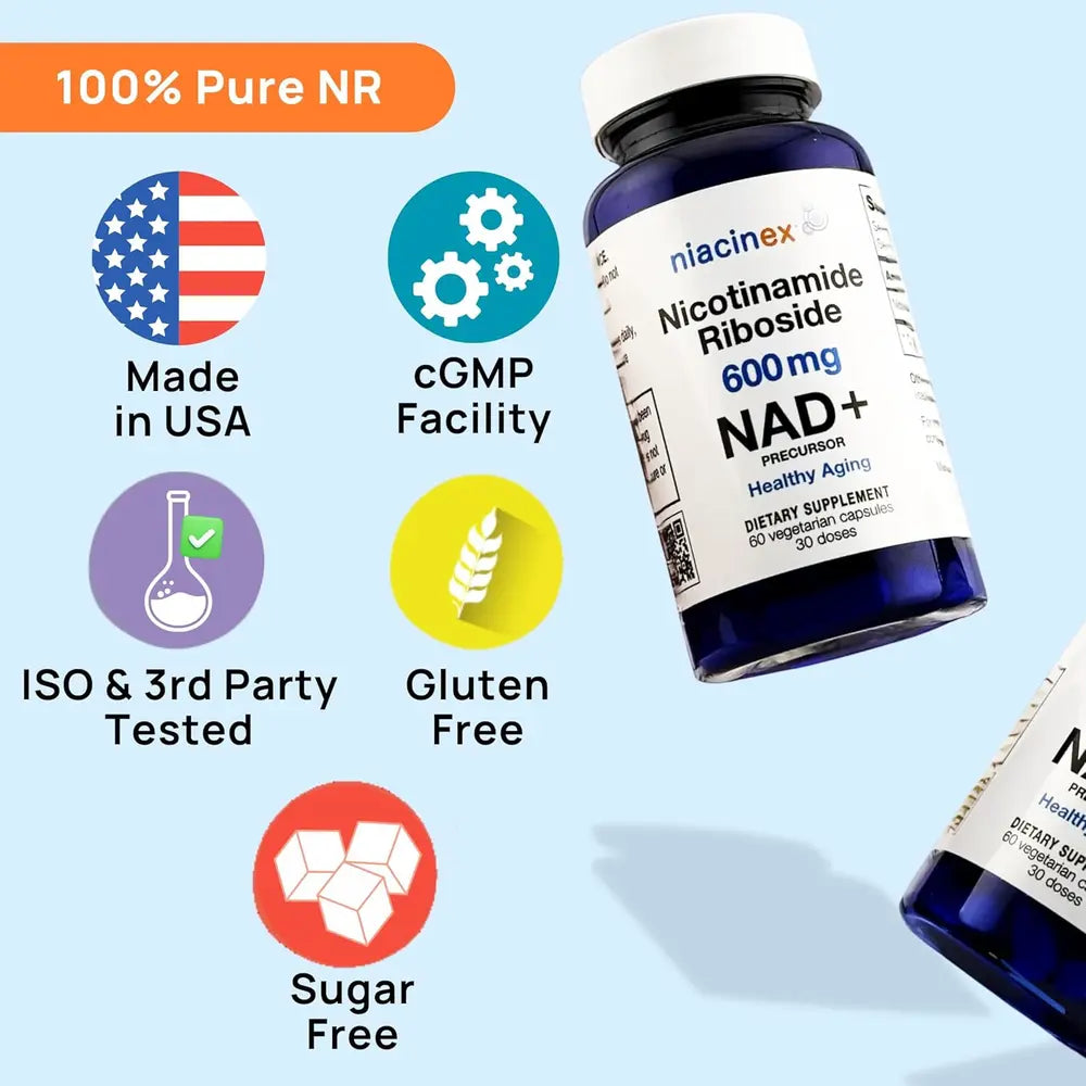Niacinex's Nicotinamide Riboside Chloride (NR) is the only approved precursor in the US that can maintain youthful levels of.